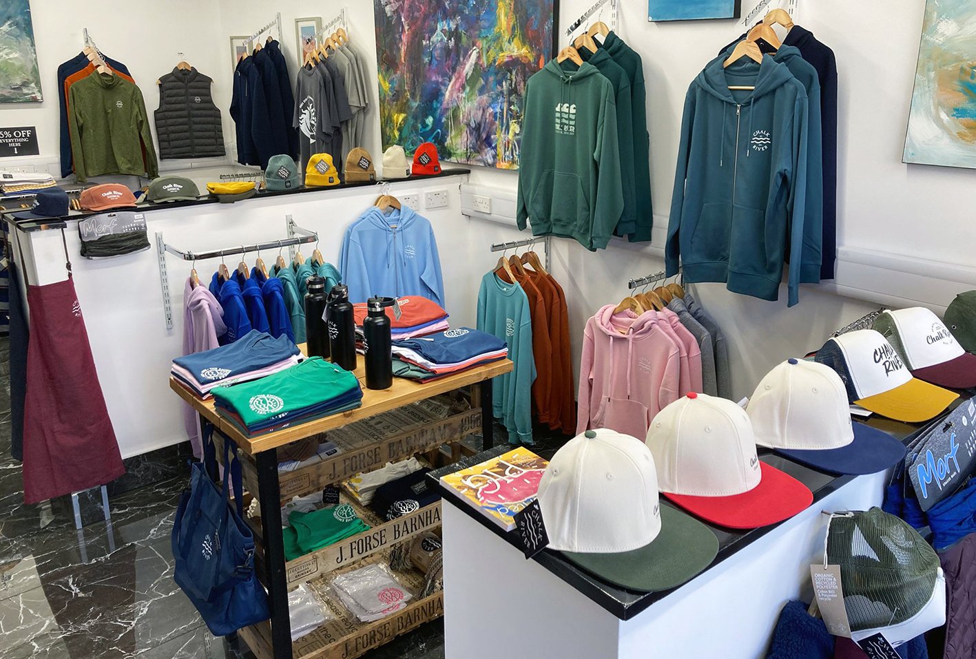 Our first pop-up arrived just before Christmas 2024, when Emsworth’s streets buzzed with festive energy. Unsure of what to expect, we quickly discovered that people wanted to touch, feel, and experience Chalk River in person. From cosy hoodies to everyday essentials, the shop became more than retail – it was a hub for conversation, discovery, and community. It confirmed what we’d hoped: Chalk River belonged on the high street, not just online.
